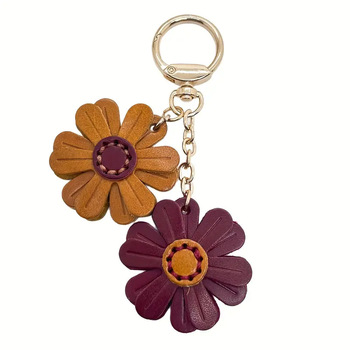 سلسلة مفاتيح بدلاية حقيبة جلد PU منجدة على شكل زهرة صغيرة ؛ قلادة للاستخدام المنزلي
